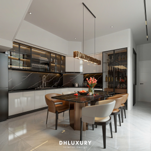 Phòng bếp, ăn và phòng khách được thiết kế liên thông cảm giác thoáng đãng khi bước vào nhà. Đây là giải pháp hợp lý để tận dụng diện tích và không gian, đồng thời giúp sự kết nối, tạo không gian gắn kết cho những người thân trong gia đình.